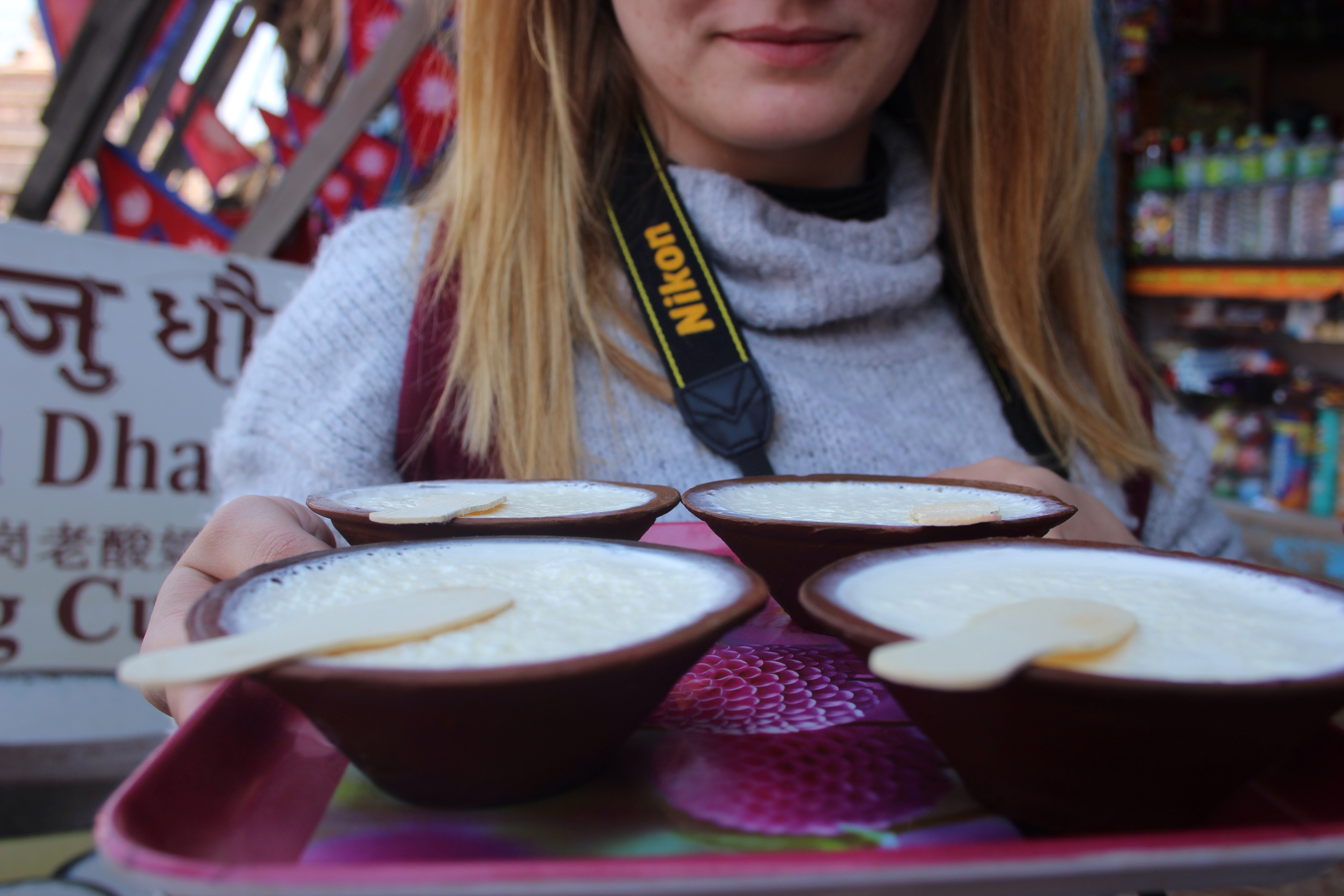 Durant nos différentes visites et journées typiquement touristiques nous avons eu aussi l’occasion de goûter les Momos (mets traditionnels du Tibet) ainsi qu’un yogourt bien spécifique.